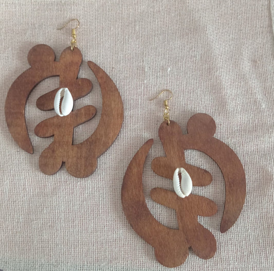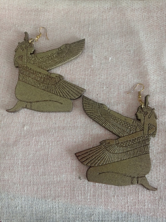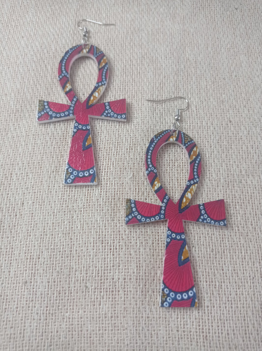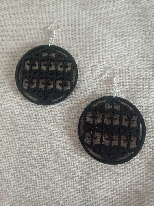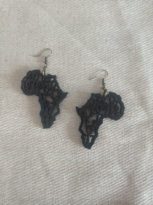 Africa Ankh Cutout Wooden Earrings – Black & Gold
